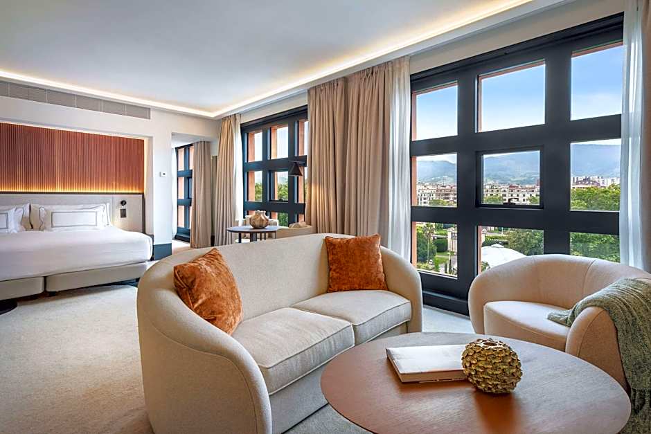 This spacious suite has scenic views of the Doña Casilda Park. It features a separate lounge with sofa and a cloakroom, a bedroom and a spacious, modern bathroom.